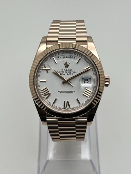 Rolex Day-Date 40 228235 Rose Gold White Roman Dial