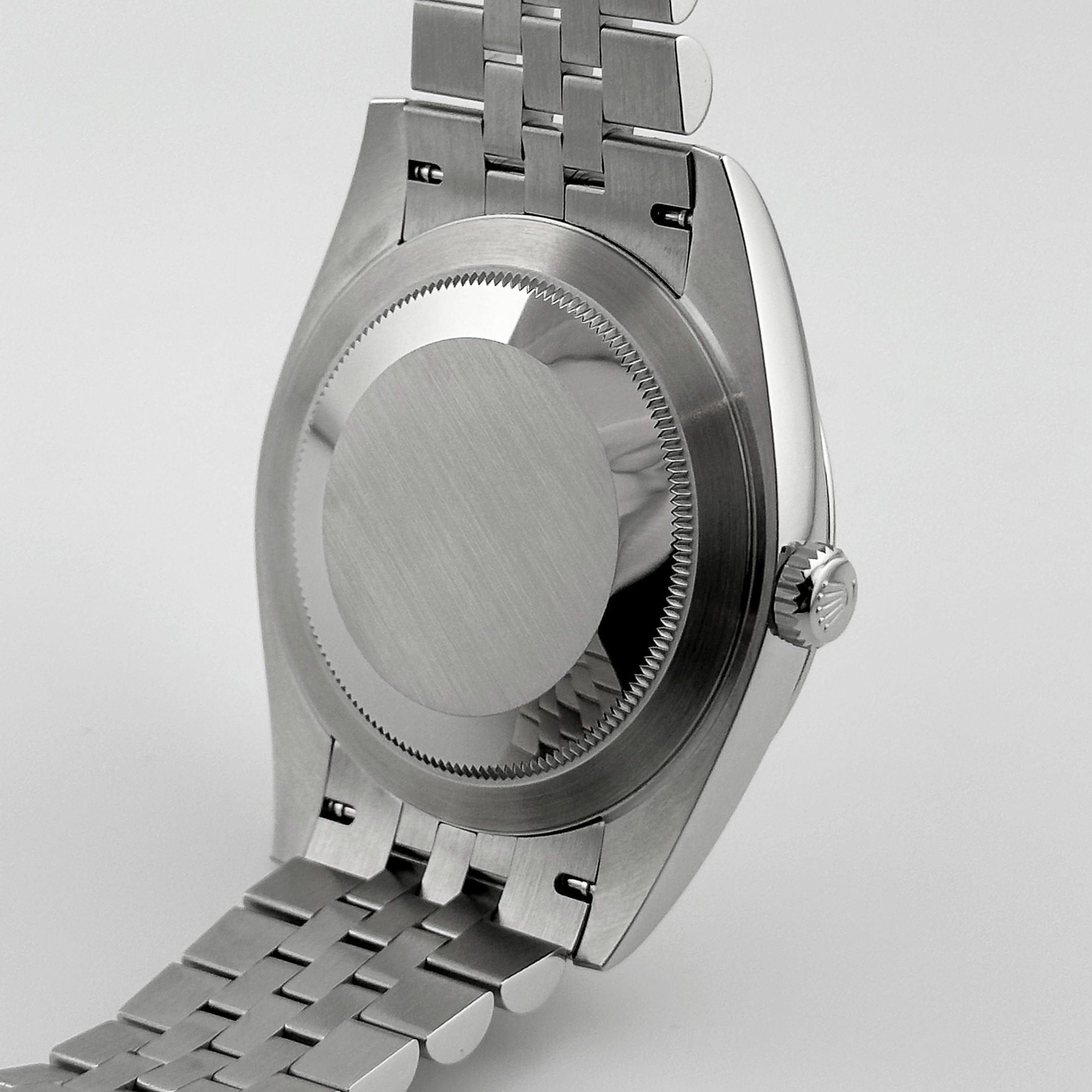 The Rolex Datejust 41 126300 pairs a classic, versatile silhouette with everyday elegance, featuring a 41 mm stainless steel case and a clean silver dial that feels timeless and balanced across contexts. Its proportions and dial clarity make it a true all-purpose Datejust — refined enough for dress occasions while still speaking quietly to modern sporty styling. The silver dial offers clear, easy-to-read markers and a date window at 3 o’clock, framed by smooth bezel lines and a Jubilee bracelet that enhances comfort and visual continuity.