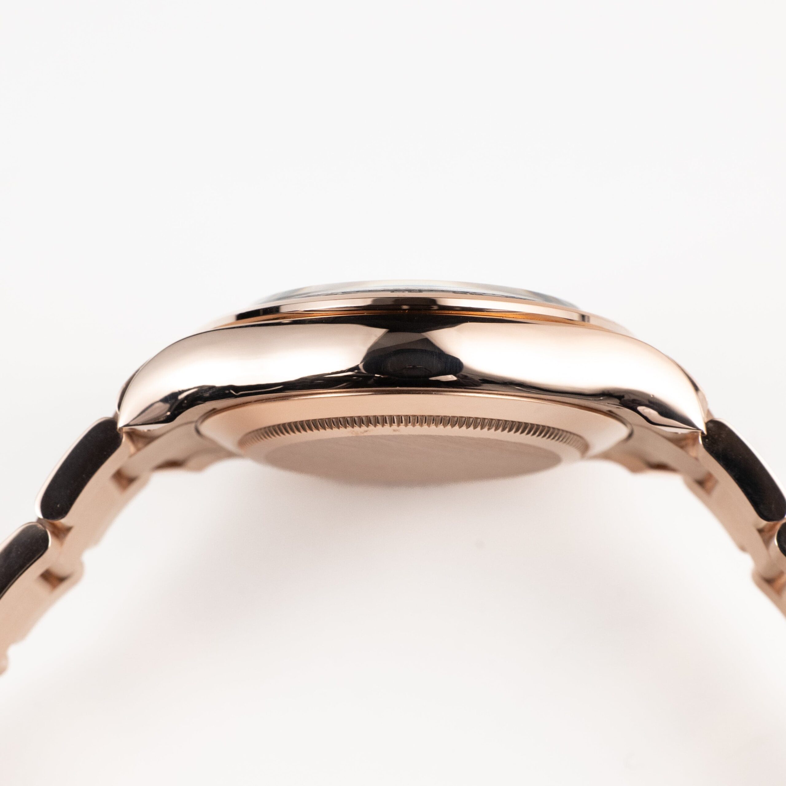 The Rolex Daytona 116505 is a luxurious interpretation of the iconic chronograph, crafted in rose gold for a timeless and refined aesthetic. The 40mm case, paired with a rose gold Oyster bracelet, exudes elegance and durability, while the polished bezel with its engraved tachymeter scale highlights the Daytona’s racing heritage. The chocolate brown dial, with its rich sunburst finish, is complemented by black subdials and rose gold accents, creating a striking contrast.