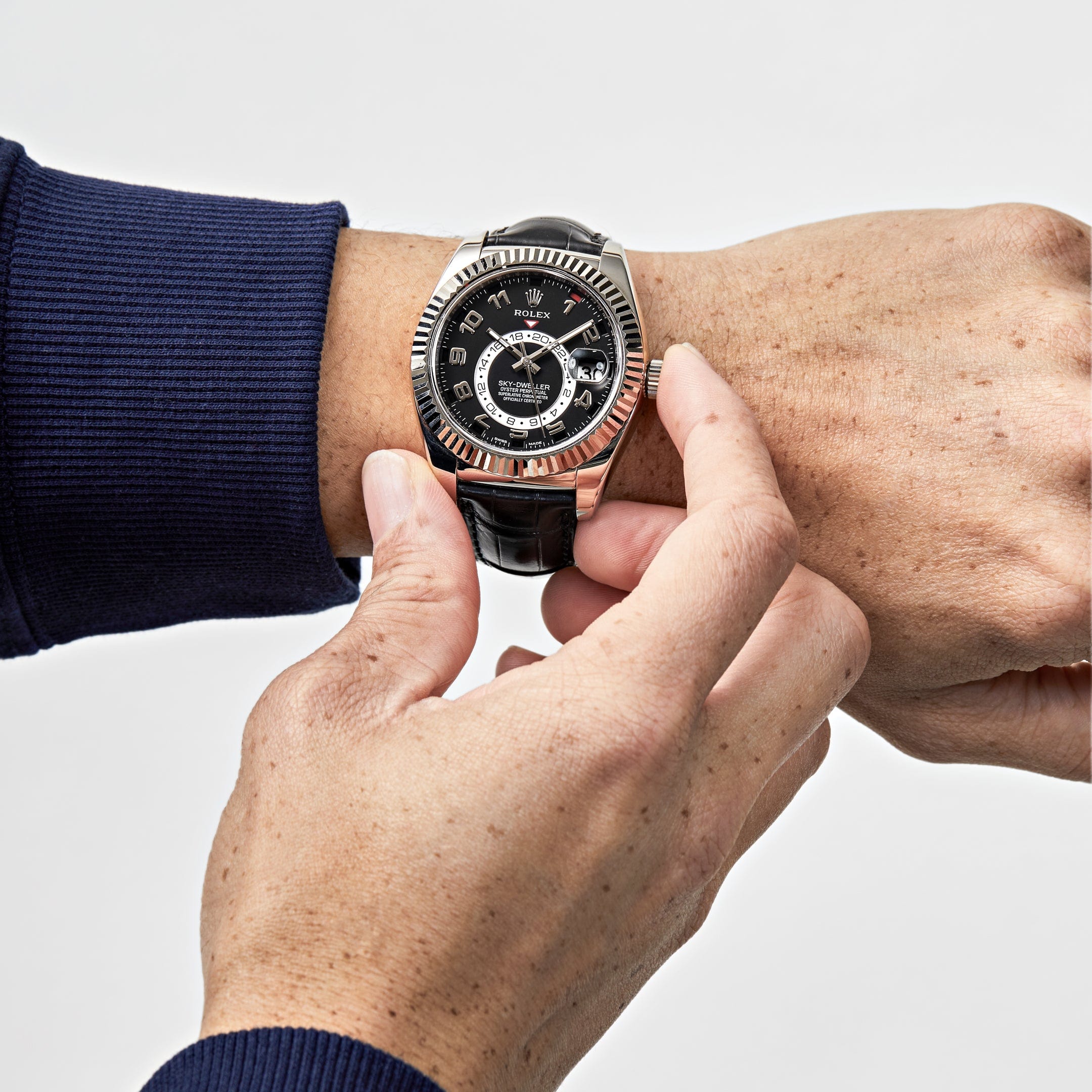 Rolex Sky-Dweller 326139 White Gold Black Dial Leather Strap